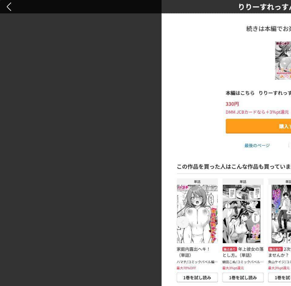 「FANZAで初めてエロ漫画(同人誌)を購入する方」という条件がありますが、これさえクリアできれば、めちゃ格安でエロ漫画や同人誌が読めます。