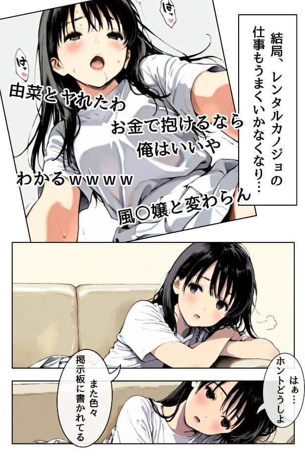 幼い頃から隣に住む千夏ちゃんは、明るくて頭のいい女子大生。 生活費や借金返済、学費のためおっぱぶで働いていた。 色恋営業の才能を発揮するが、客とのトラブルでクビに。生活のため「レンタルカノジョ」に転職し、恋人っぽいデートで稼ぐ日々を始める。だが、ネット掲示板で「由菜、融通が利く」と噂が広まり、客の要求はエスカレートし―― 背徳感と欲望の狭間で揺れる由菜は、どこまで堕ちていくのか? ※実在の人物、団…
